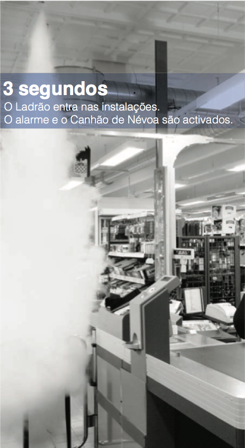 Com o Sistema de Névoa PROTECT™ o assalto é efectivamente parado em poucos segundos.